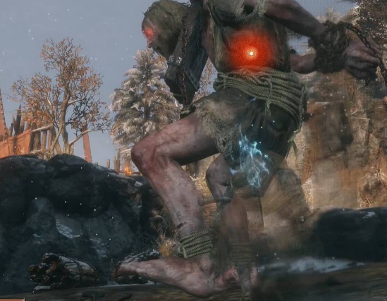 2、来到赤鬼处,一开始赤鬼是被捆绑起来的,直接近身攻击。大约砍到7刀左右赤鬼就会挣脱束缚,这时要注意躲避攻击。