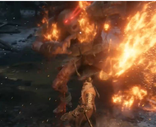 3、如果有拿到火吹箭直接用火焰烧赤鬼,赤鬼被烧后会进入硬直可以趁机攻击。两次燃烧以后赤鬼会陷入“炎上”即燃烧状态,这时他不仅会持续掉血还会进入一个很大的硬直,一条血也基本烧没了。赤鬼开启第二条血后也可以采用这种打法耗光他的血量。