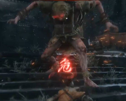 4、如果没拿到火吹箭就只能慢慢消耗赤鬼血量了。赤鬼出手很慢有前摇动作,踢腿,下压攻击很好躲横向闪避即可,主要注意近身时的擒抱攻击。时刻注意头上的危字,不要想着去防御,采用后跳闪避的方式避开这一攻击。闪避后打两下再避开,避开后再接两下攻击,不要贪刀,就这样消耗完赤鬼的两条血。注意打赤鬼打到一定的血量以后他也会陷入硬直。