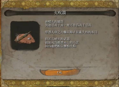 1、通过窃听苇名小兵的对话我们能了解赤鬼是怕火的,这时我们可以通过收集火吹箭来强化自己的火属性攻击,方便更好的打击赤鬼。