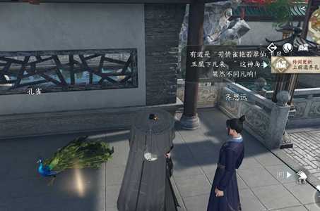 4、再次找到npc【齐思远】对话,在和【方承意】对话后收到道具【孔雀】。