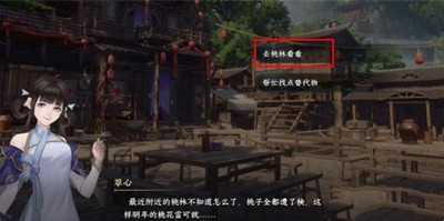 1.首先来到下图位置,与NPC翠心对话,对话选项选择【去桃林看看】;
