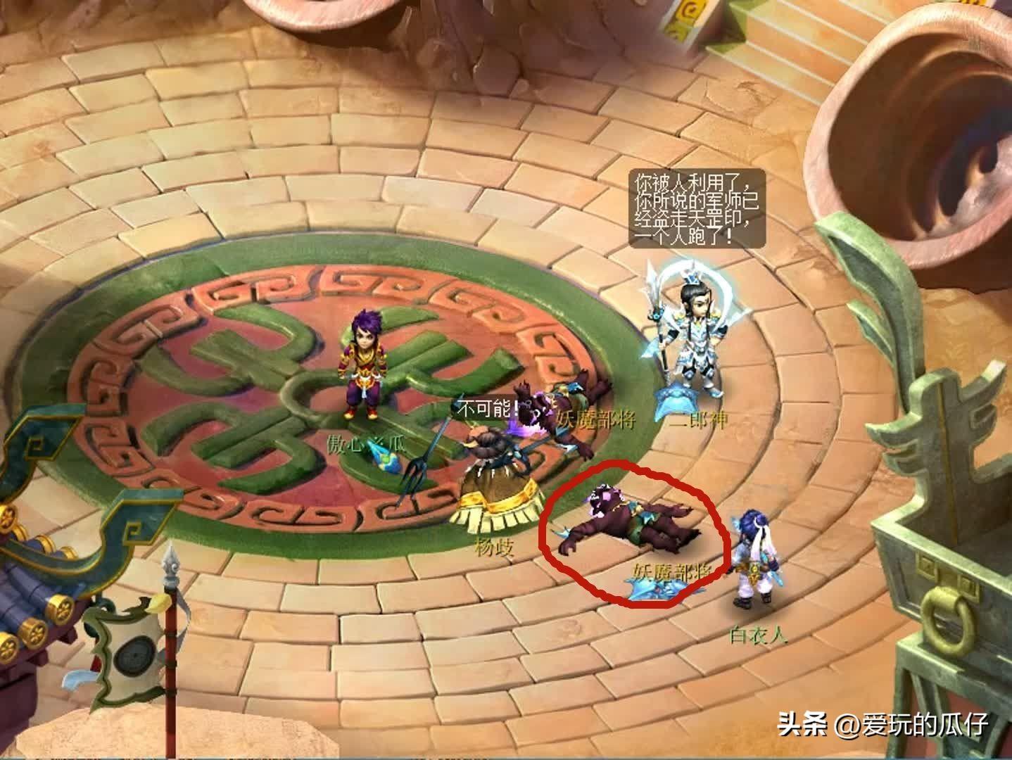 无底洞用奶脉稳妥,秒脉比较激进,视自身抗性吧,稍微慢一点保稳比较好,不死就没有损失。战斗结束后会有一个过场动画,出现几个妖魔部将,记得数一下数量,待会答题用。