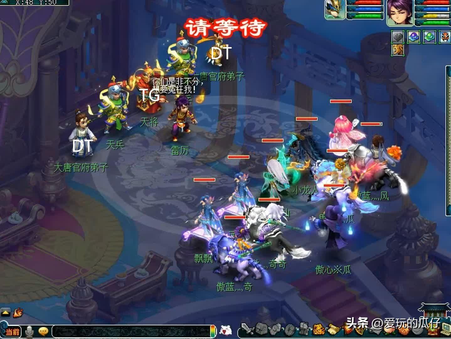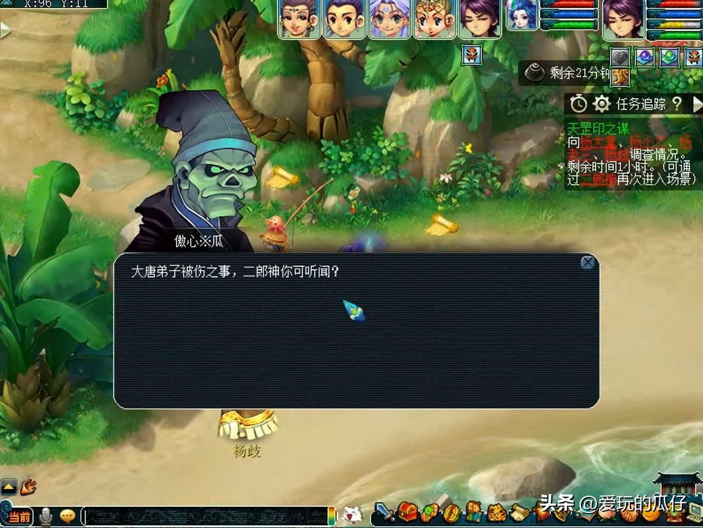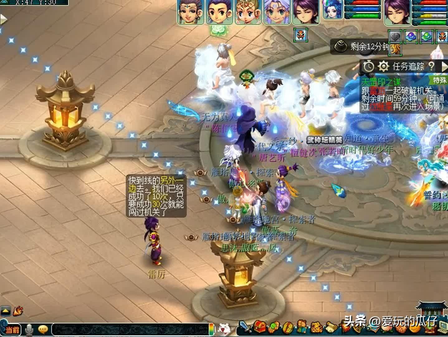 然后回到凌波城跟二郎神对话,又传送到一个虚拟场景,点击雷历对话会解散队伍,然后组队,完成小游戏,站到雷历对面就行,地上有发光的线。