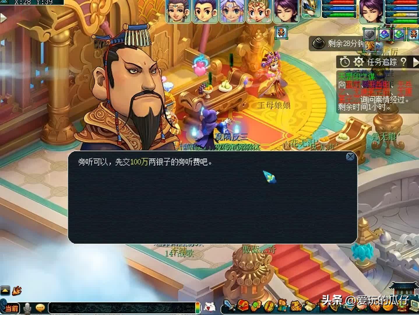 先去地府找孟婆对话,然后去天宫找玉皇大帝,对话完要去旁边偷听八卦。(玉皇大帝说的旁听费要记一下,待会要问)