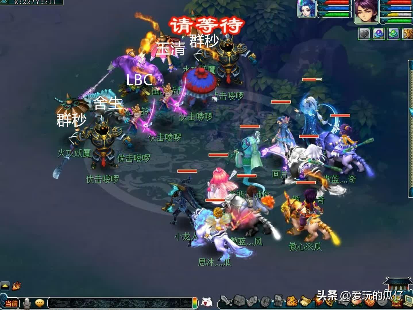主怪会召唤,所以优先集火,旁边的两个鼠先锋是狮驼岭,会鹰击,第一回合变身,先封印上,其余小怪普攻,物伤有点高,加好血,用全力宝宝最好。