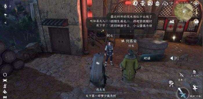 2、到雁门关416.747处与NPC“何慕安”对话,获取“醒酒药”