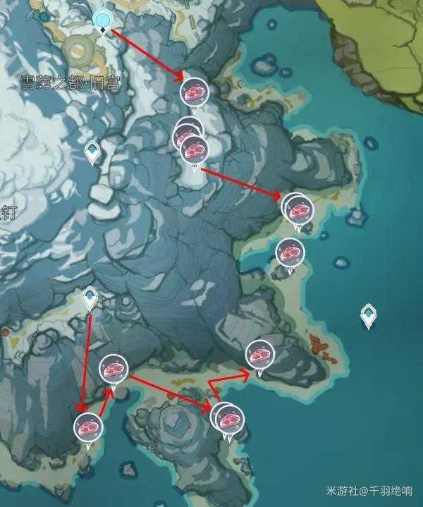 第一处:雪葬之都旧宫附近,从七天神像往下飞;(靠近海的位置,也可以直接从那边传送点过去捕杀)