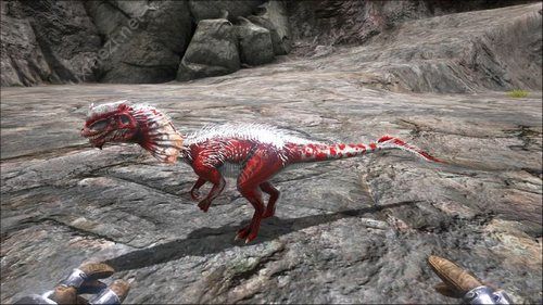 双棘龙体型不大,颈部两边长了长长的刺腮,身体部分有少量毛发覆盖。双棘龙最大的特点就是可以喷射使敌人暂时失明的毒液,在方舟中一般以2-3只群居。