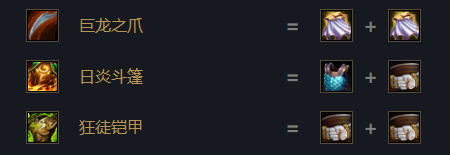 该套装备同样利用巨龙之爪和狂徒铠甲增加瑟庄妮的魔法抗性和生命能力,搭配日炎斗篷攻击2格内的敌人造成伤害,并降低其治疗效果。