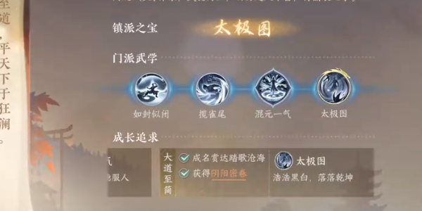 演奏等级需要达到7级,成名赏达到踏歌沧海,获得门派信物化劲掌法和阴阳密卷。