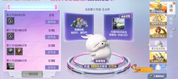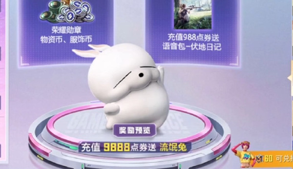 2:我们只需要充值9888点券就可以直接领取四级包流氓兔了,但是这个点券折合成人民币的话差不多要一千块了;