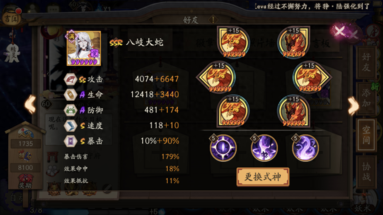 第1阶段:八岐大蛇*2、妖琴*2、输出祭品、疾风神乐。