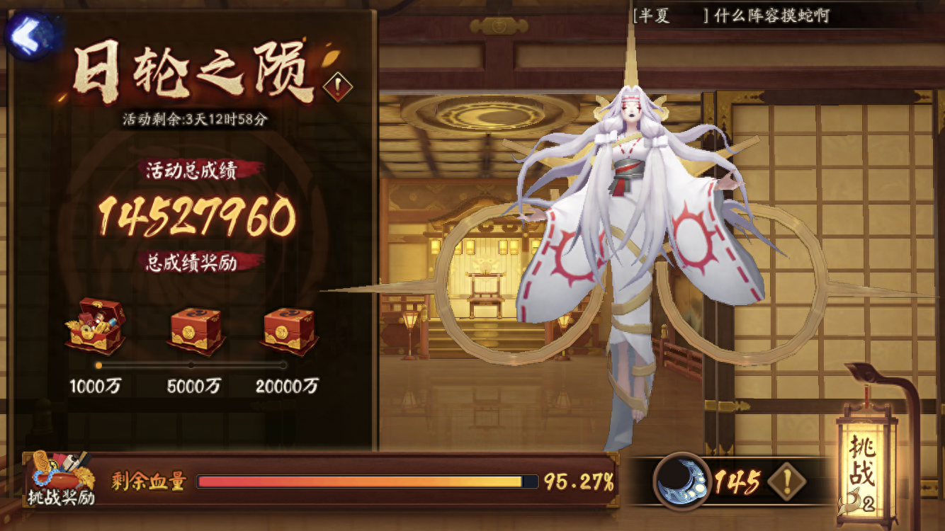 挑战时间:9月23日9:00-9月26日23:59,进入瞭望塔-日轮之陨即可挑战卑弥呼。
