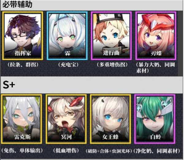 1:在当前版本中辅助建议必须练一个,如图所示,必带的辅助有四个,指挥家,霖,进行曲,忍蝶;