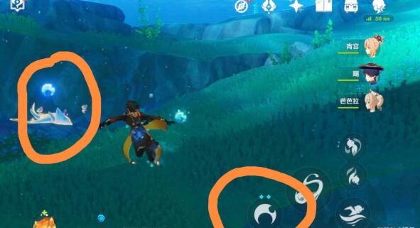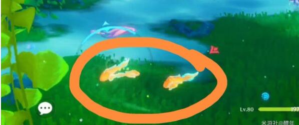 同时,一般战斗场地的附近都有这种亮晶晶的鱼时不时刷新,旅行者可以通过它们来补充自身血量。