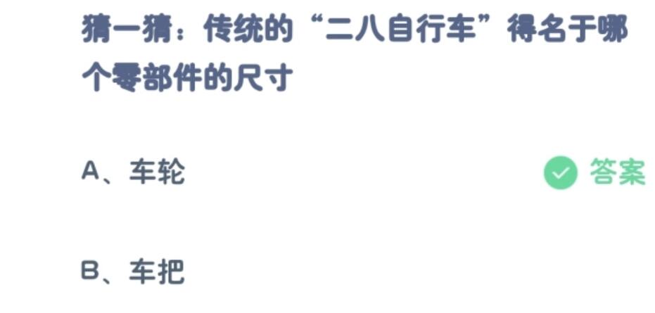 问题一、猜一猜:传统的“二八自行车”得名于哪个零部件的尺寸?