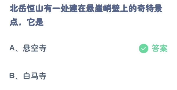 问题二、北岳恒山有一处建在悬崖峭壁上的奇特景点,它是?