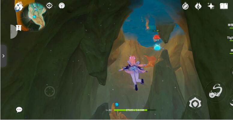 6、机关点亮后可以传送到水下,到达水下可以看到一只异变重甲蟹,捕捉技能后可以打碎旁边的石头,里面有一个水神瞳。