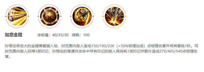 孙悟空大招可以眩晕身边敌人1秒,并给他们叠加三层印记,普攻带印记目标可以造成额外伤害。