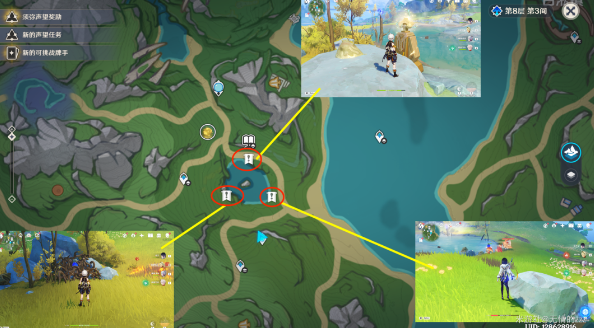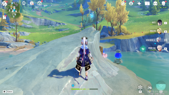 3、解谜完成之后,要飞到湖的中心,拾取这里的小水滴;