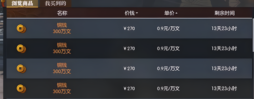 3、藏宝阁中的物品、出售价格、搜索不会根据价格排序的。