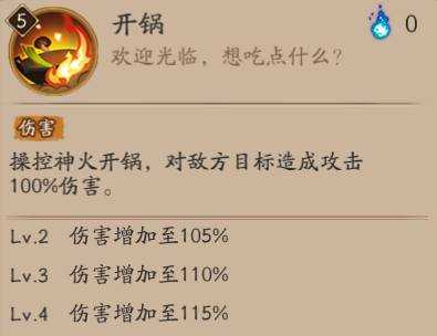 操控神火开锅,对敌方目标造成攻击100%伤害。