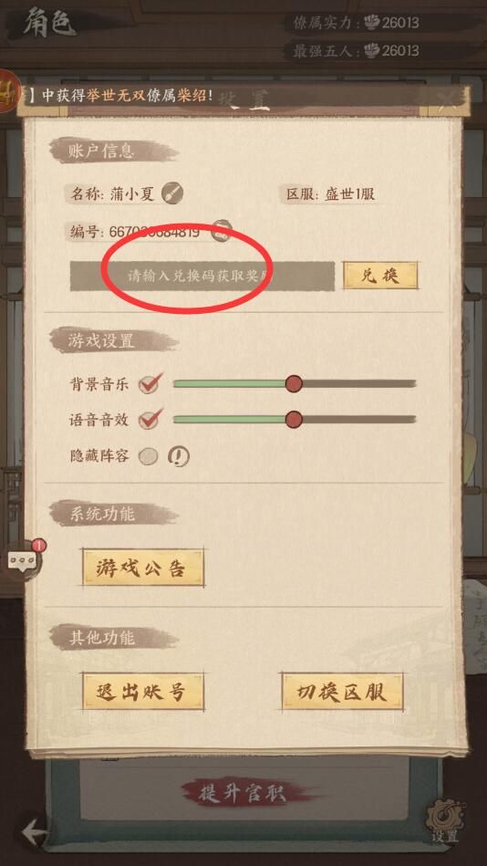 4、在输入框中输入您获取到的兑换码,然后点击兑换按钮,即可领取奖励。