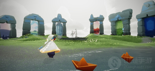 2、以旋涡下来的位置为正方向,玩家需要向有石雕的建筑飞。