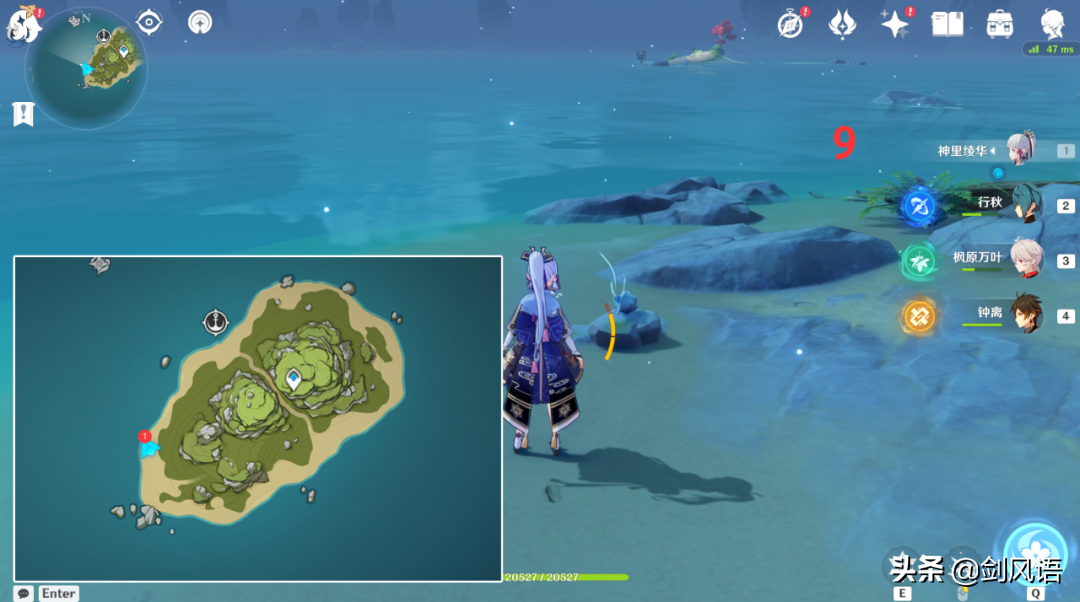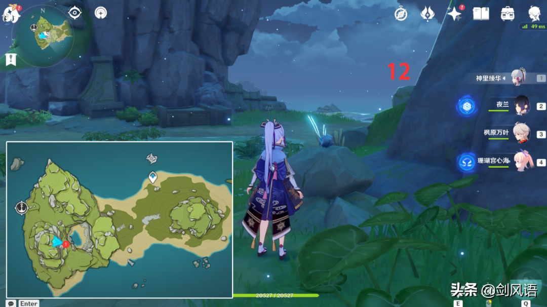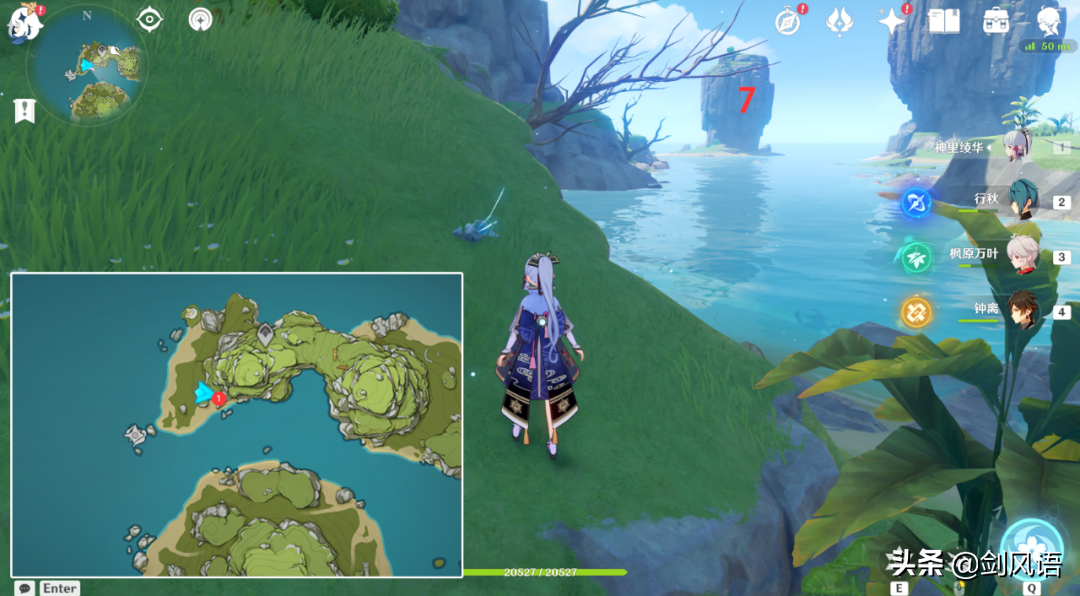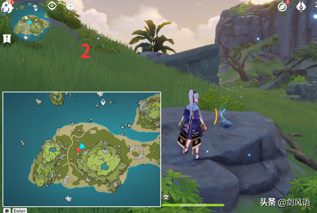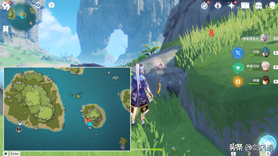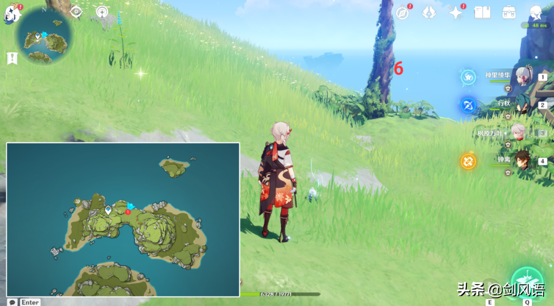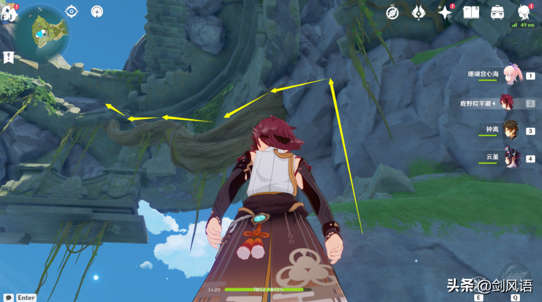 6.在山顶上,从传送点出爬上来,带万叶/温迪,更方便。