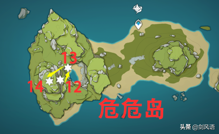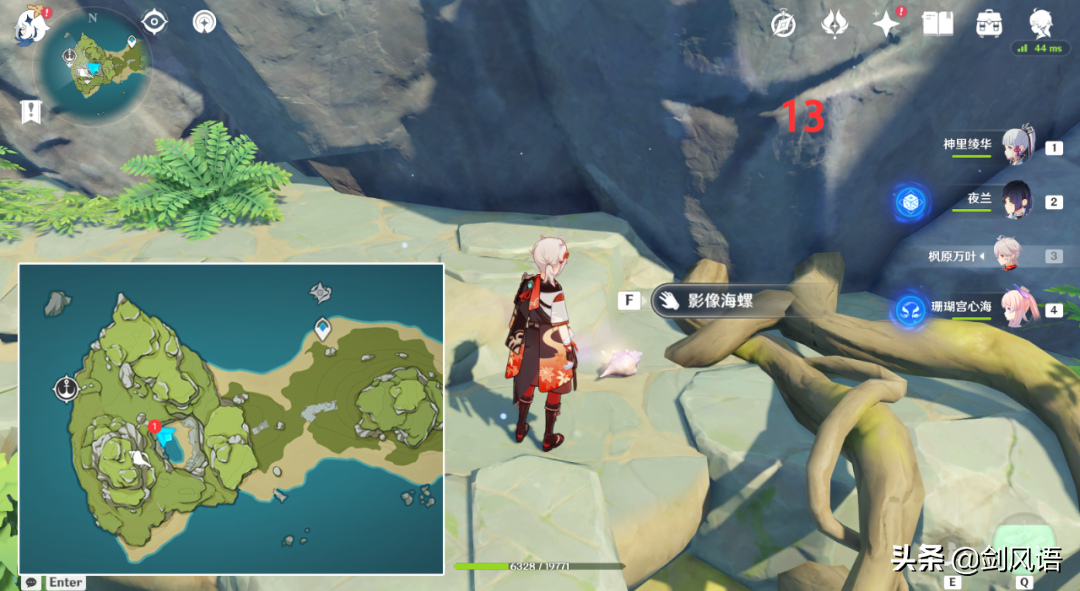 13.位于半山腰,雷锤下面那层平台,从12个海螺处爬上去,然后通过上方的树藤爬到平台上。带温迪/万叶/钟离,更省时间。