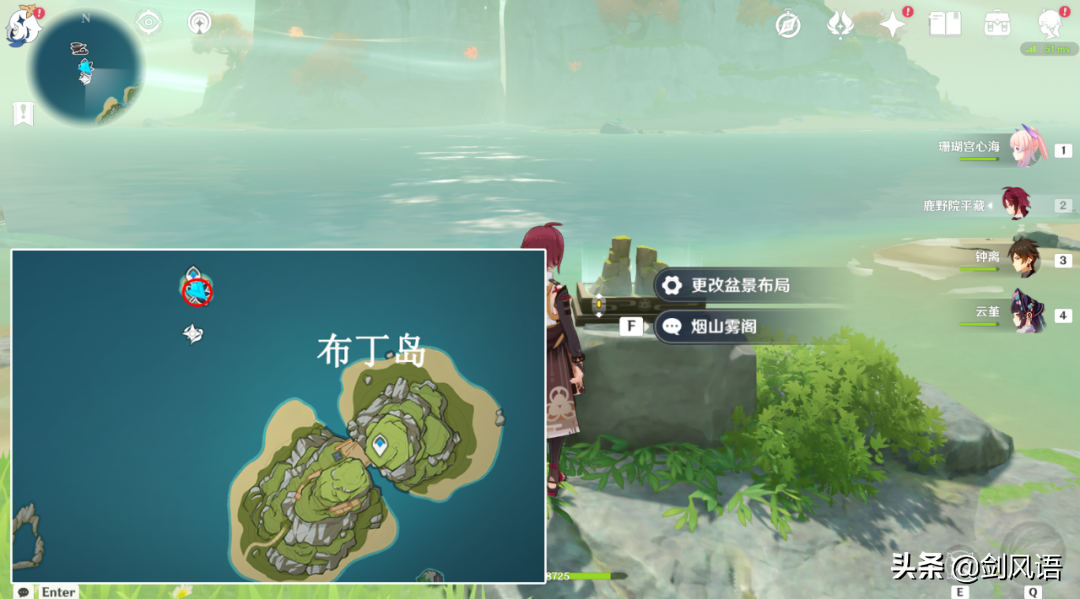 如果没有拿到15个海螺,可以来到这里从新进去秘境,在布丁岛上方传送点旁边,靠近石头处,然后选择【烟山雾阁】。