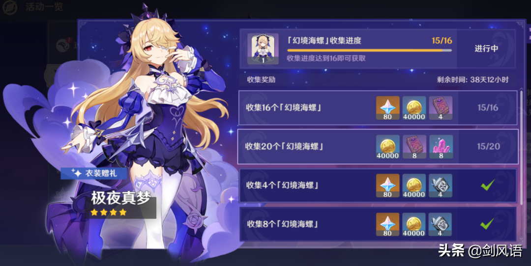 海螺收集,昨天就做了,本来是打算昨天出的,但想到16个海螺就可以换小艾米的皮肤,都收集到14个了,明天应该就凑够了吧,没想到的是,居然今天只是增加1个海螺,还是从万叶的秘境里拾到的。给我整无语了。