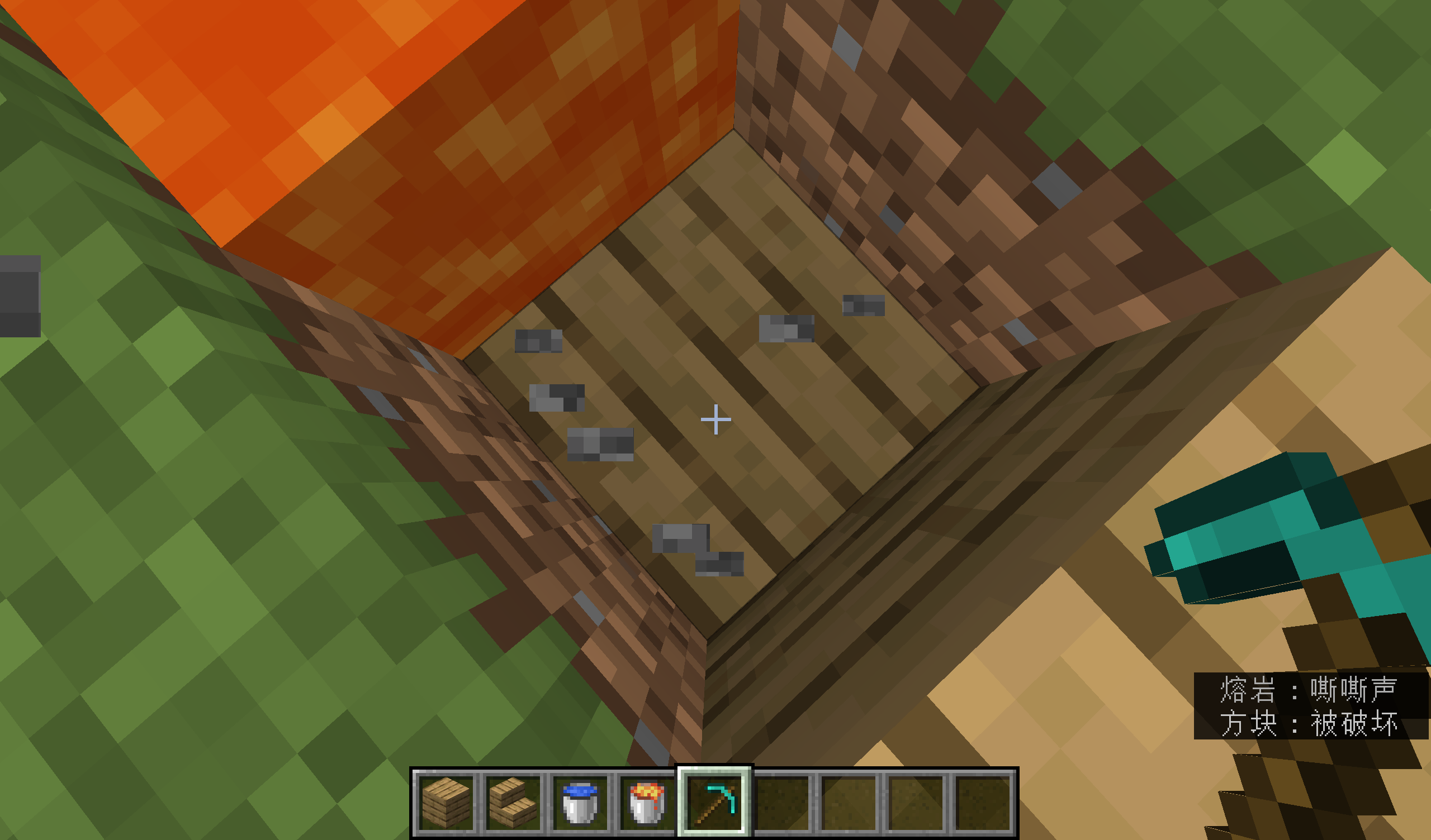 4.在坑的另一侧放上岩浆。