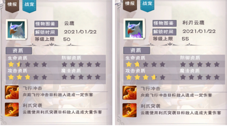创造与魔法云鹰与利刃云鹰的饲料制作配方分别是什么?这两个战宠都是很受欢迎的存在,而且是游戏中新增的,对于云鹰与利刃云鹰的资质技能,以及饲料的制作方法,小编都已经在下面准备了相关的攻略分享。