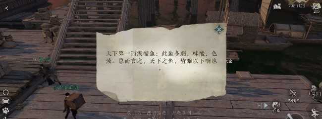 3、接着跟余洋对话向他出示刚才那条怪鱼,然后玩家去找这个“京城双势,在水一方”的线索;