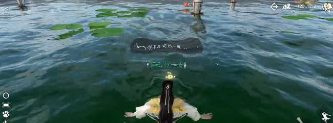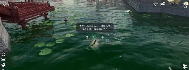 2、接着玩家需要去水下查探,下去之后发现没有任务指引,大家就不知道干什么了,我们往左边游可以看到一群与,坐标为【1229,1201】,然后你会发现,自己在自言自语;