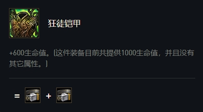 +600生命值。(这件装备目前共提供1000生命值,并且没有其它属性。)