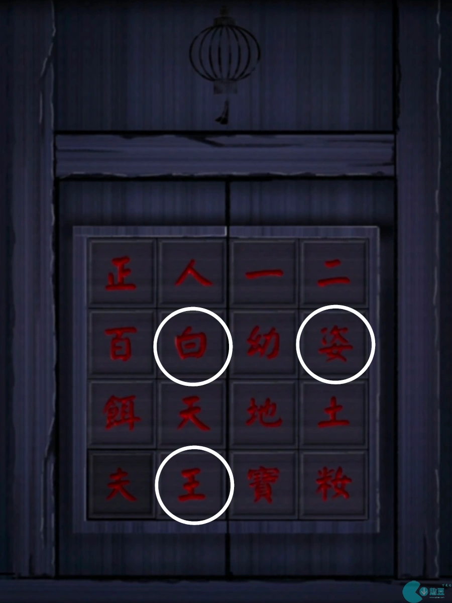 5、在院子中,把铜钱丢进水缸里得到【魂幡】、【火符】,用木桶打水到正厅擦干净桌子,得到字谜,点击功德箱上的字获得【纸钱】。