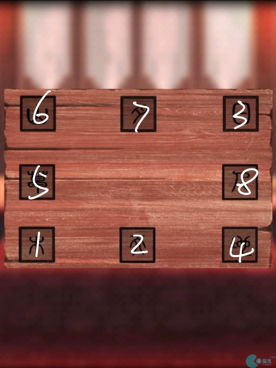 7、进入右边小房间,把玉佩放进食盒里,根据地下室线索完成小游戏,用毛笔蘸取金漆得到【金漆毛笔】。