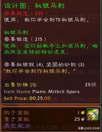 魔兽世界怀旧服秘银马刺设计图怎么获得?锻造专业技能