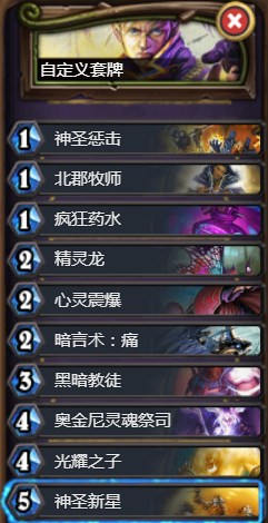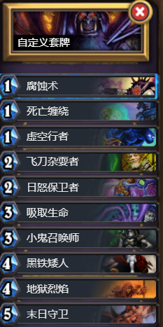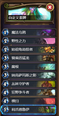 战吼随从感觉要比亡语多,这个比上面那个好用一点,尤其是青玉和克苏恩套牌就很强势。