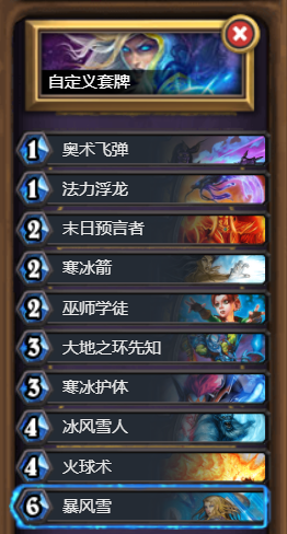 各个职业的牌组都是固定的,初始牌组的特点就是比较杂,基本上把各个职业特有玩法的相关卡牌都塞了一张进去,这就导致卡组整体质量一般,但是对于后续卡组的改进具有一定的影响,在这里罗列了一下各个职业的初始卡组。