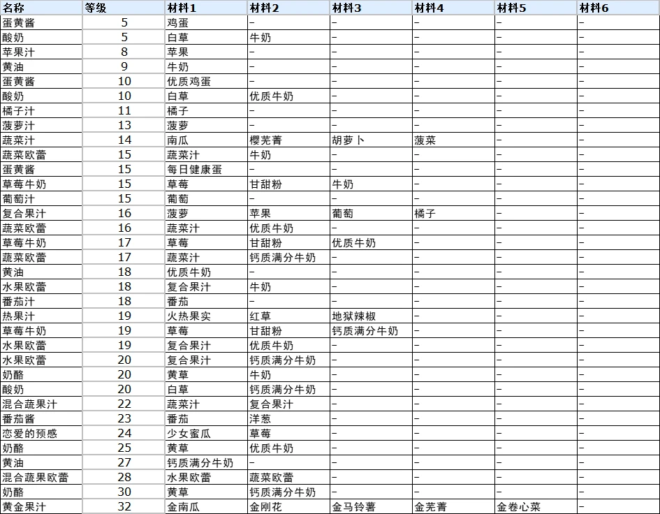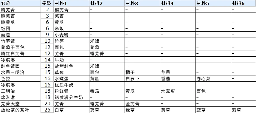 在符文工厂这款游戏当中,能够带给大家一个不一样的体验,整个游戏的玩法也是比较简单的,想要及时的了解符文工厂3料理完整合成表是什么的话,如果对此不太清楚的话,下面小编就为我们大家整理了相关内容,所有的玩家朋友们都可以及时参考。