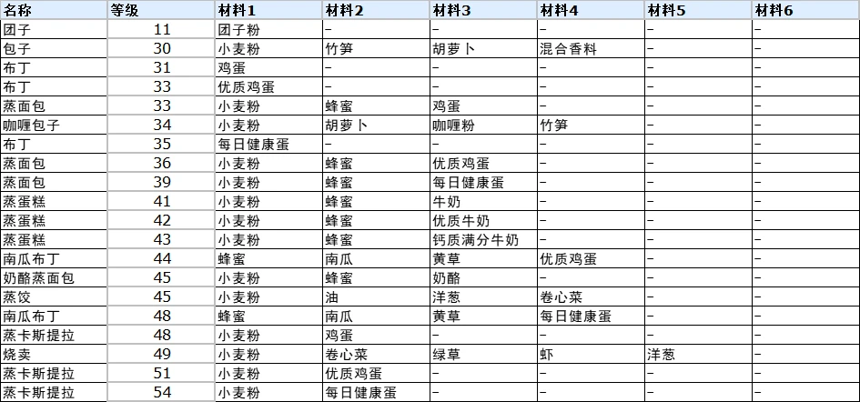 符文工厂3料理完整合成表是什么-符文工房3攻略之全料理配方食谱