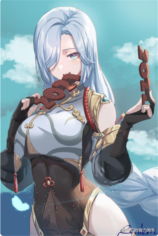 这是由画师“Reulem”创作的气质温和,如邻家大姐姐般的“申鹤”。