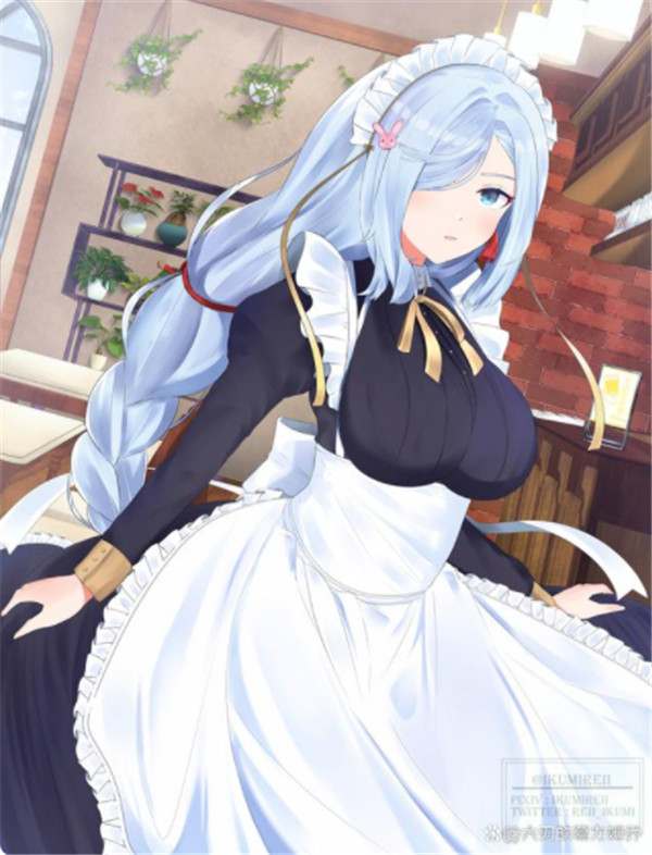 这是由画师“Reii”创作的御姐气十足的女仆风格“申鹤”。