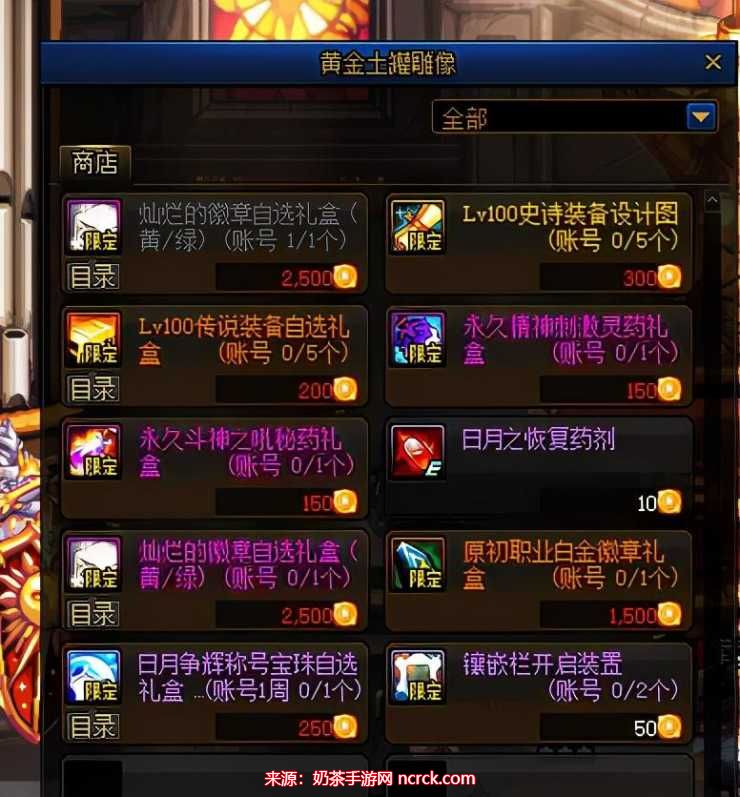 除了达芙妮,超时空漩涡商店和普雷.伊希斯商店也是固定产出华丽徽章的重要渠道。