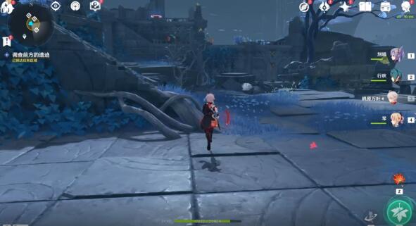 2、跟随任务指引前进到遗迹附近,中途会有一个任务状态:调查前方遗迹。