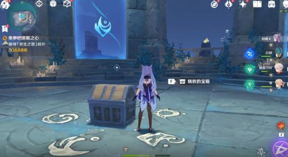 4、使用旁边的“日月回轮”切换至“白夜”状态,然后就可以打开箱子,获得碎片。